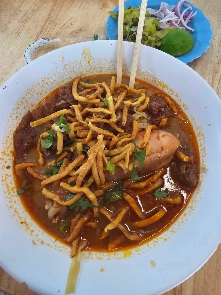 But beyond the heat, the dish was phenomenal. The chicken practically fell off the bone, infused with layers of bold, savory flavor. If you can handle (or at least brave) the spice, this khao soi is absolutely worth the experience.